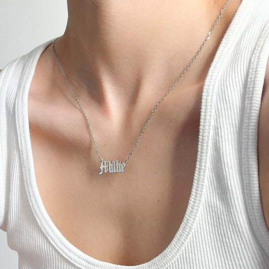 SILVER PERSONALISED OLD ENGLISH NAME NECKLACE